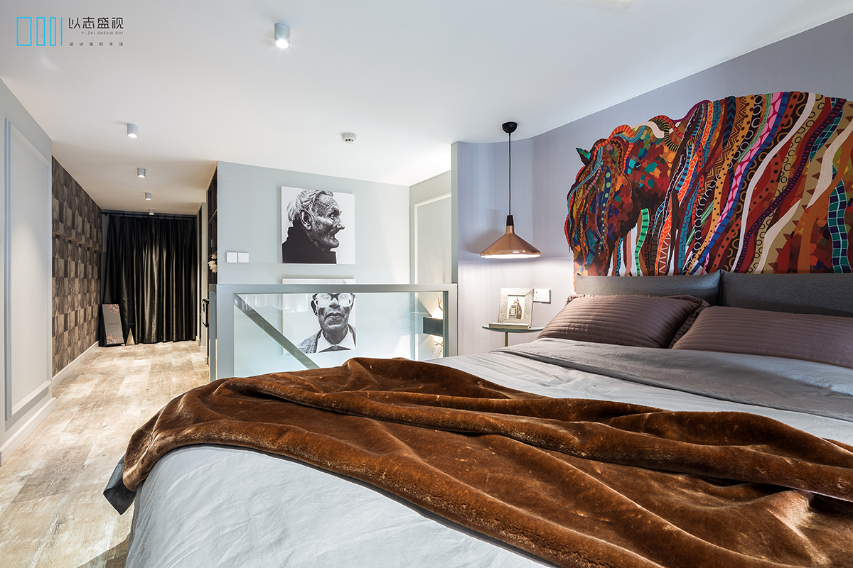浅色乳胶漆、浅色床品、亮色壁画