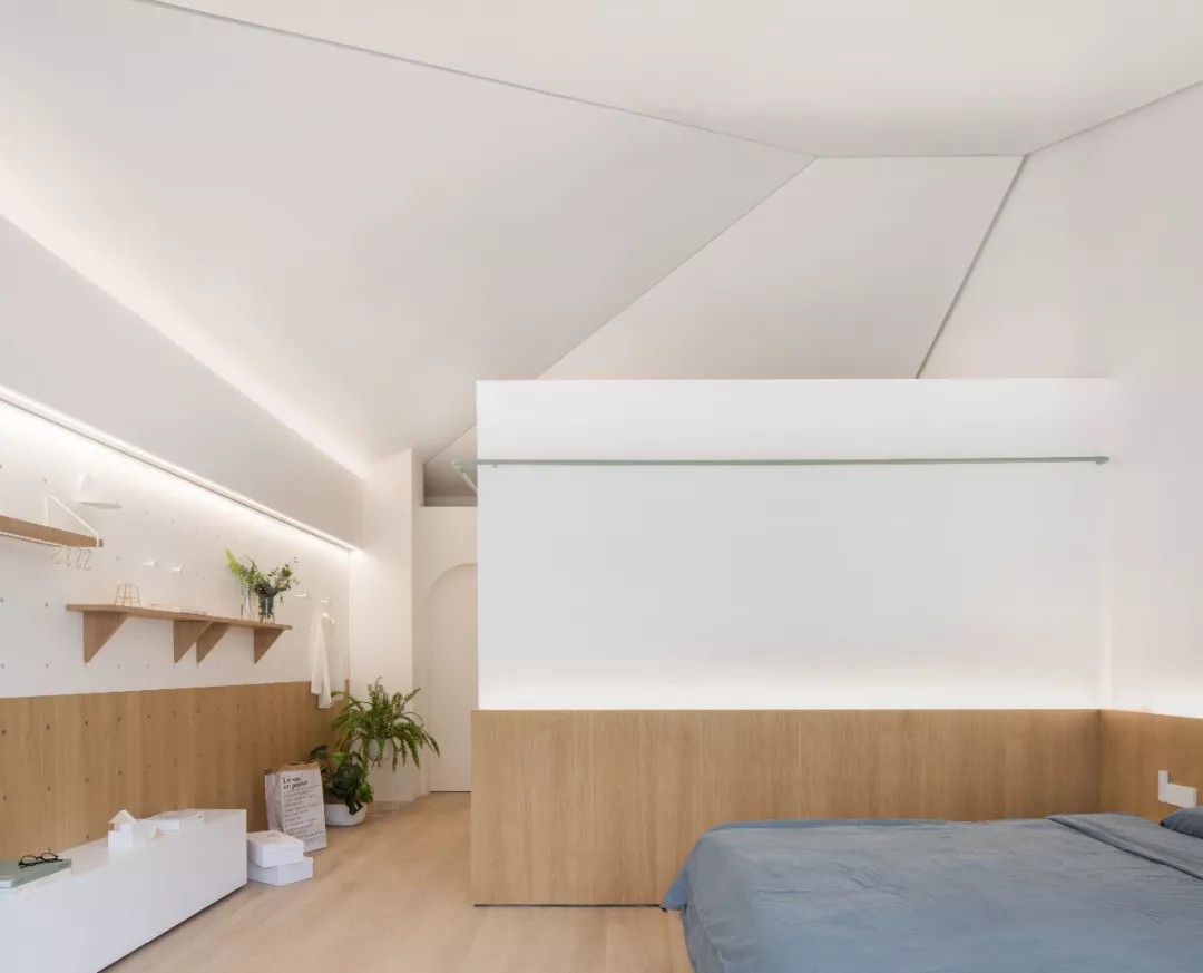夫妻卧室保留建筑原有的坡顶结构,