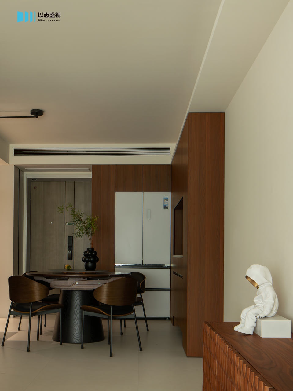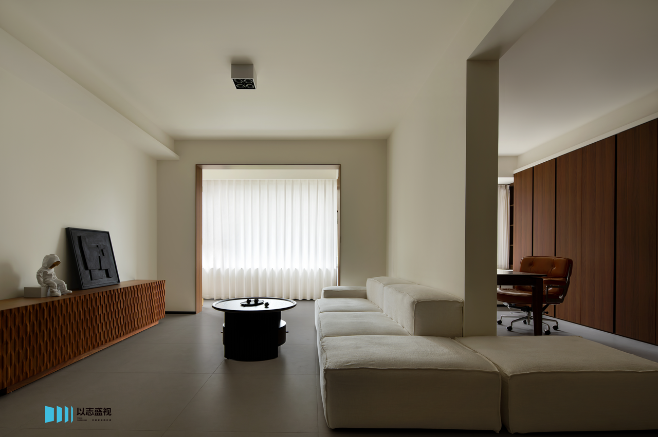 屋主一开始考虑的是将北次卧改造为多功能间,但设想往后的居住场景,去到远离公区的房间,还需要经过近五米的过道,缺少了日常的互动性。