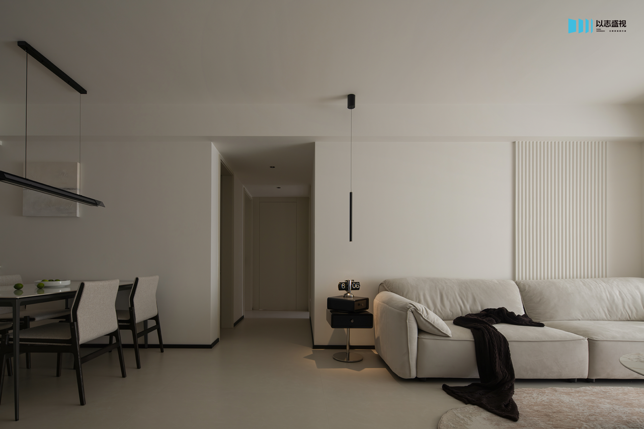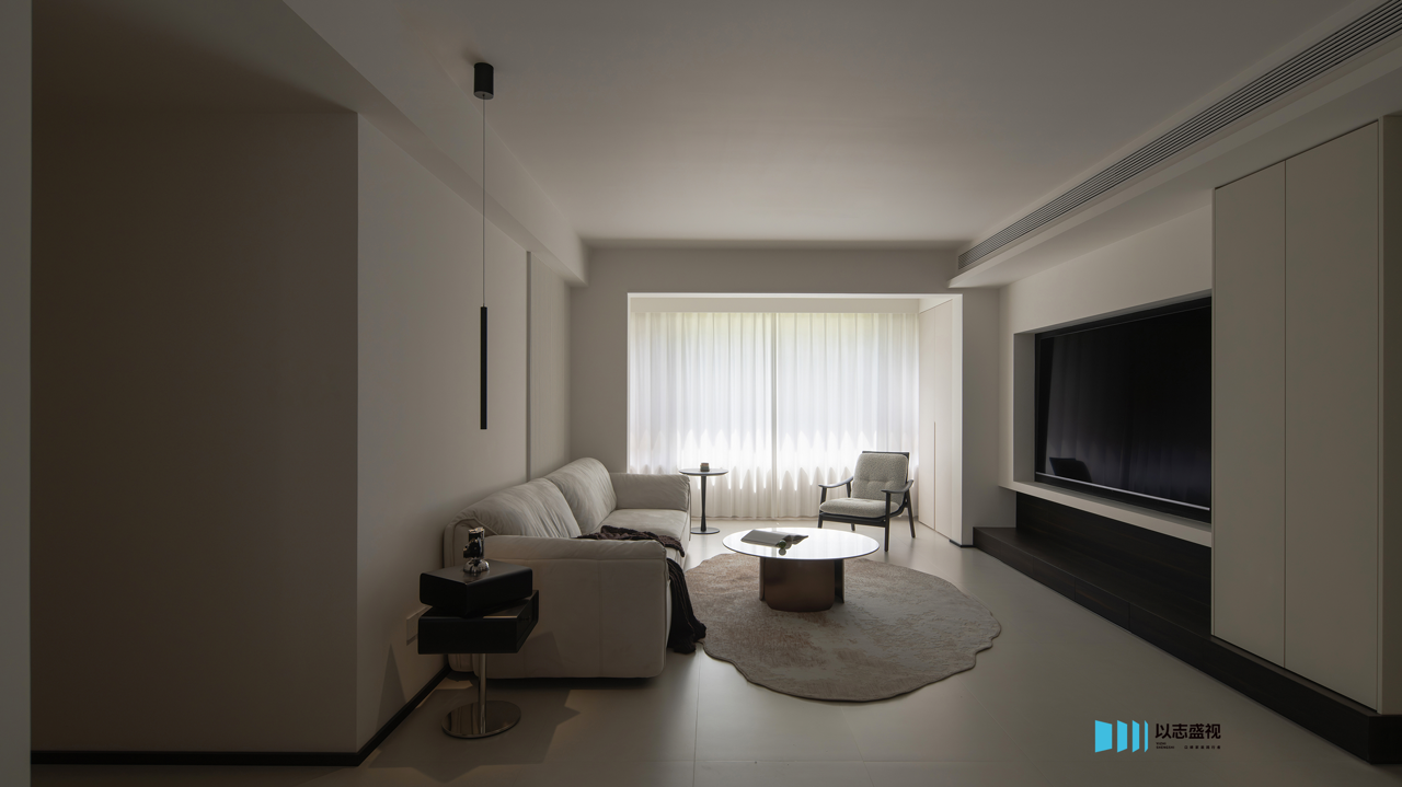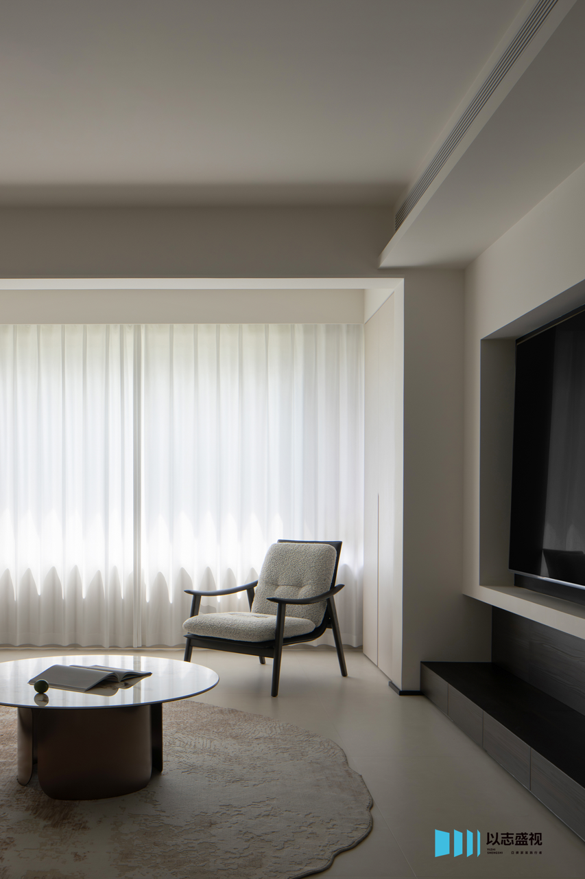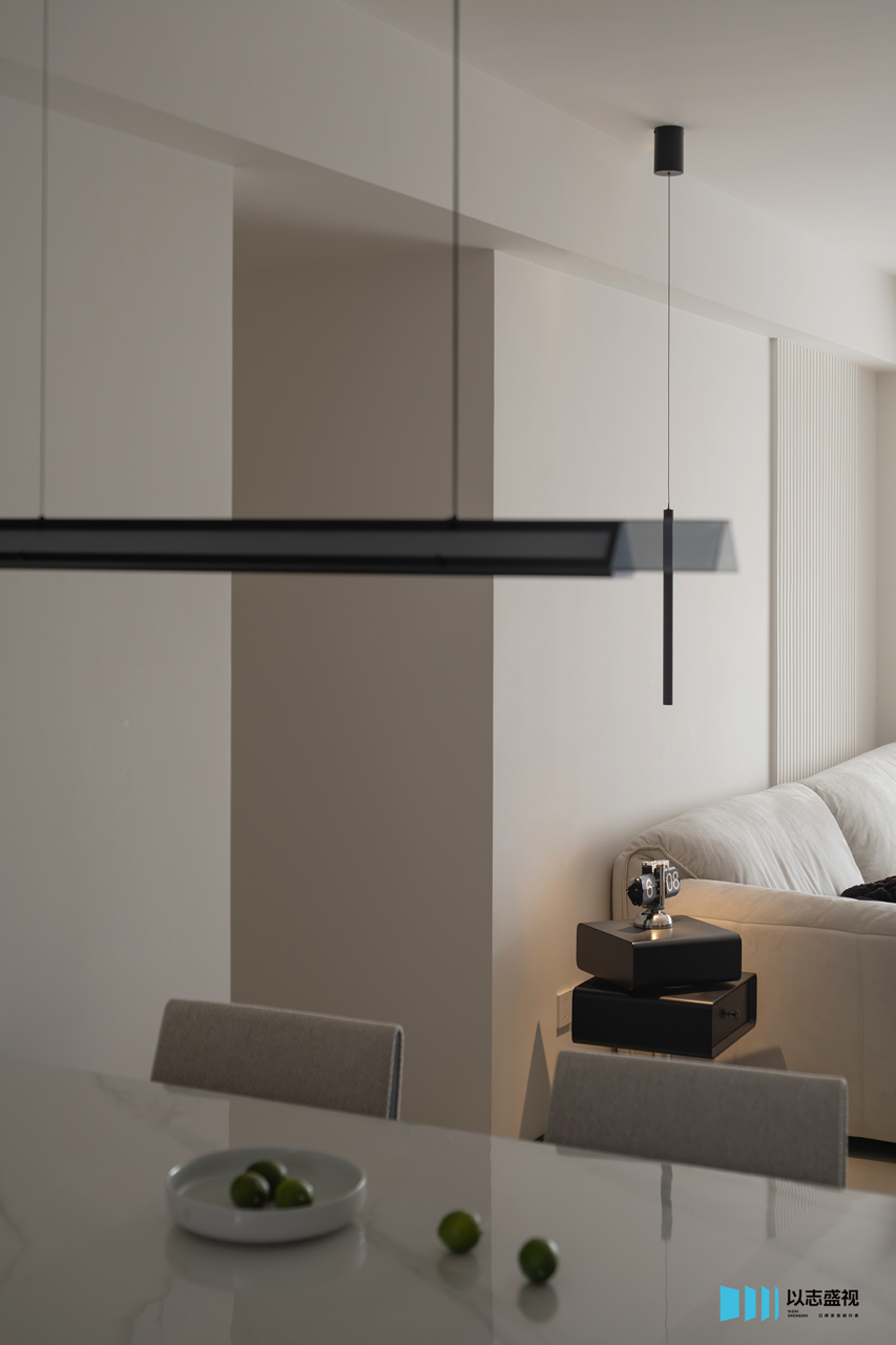 背景墙的拉槽造型以及影视墙的体快穿插,都是用流畅的线条塑造美学,不带一丝拖泥带水,勾勒出灵动的空间。