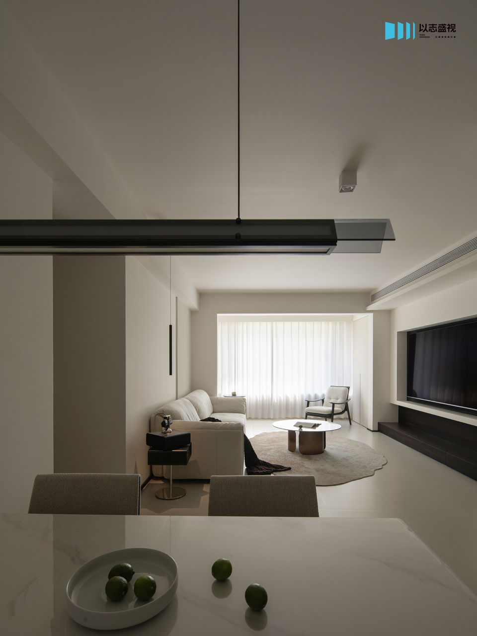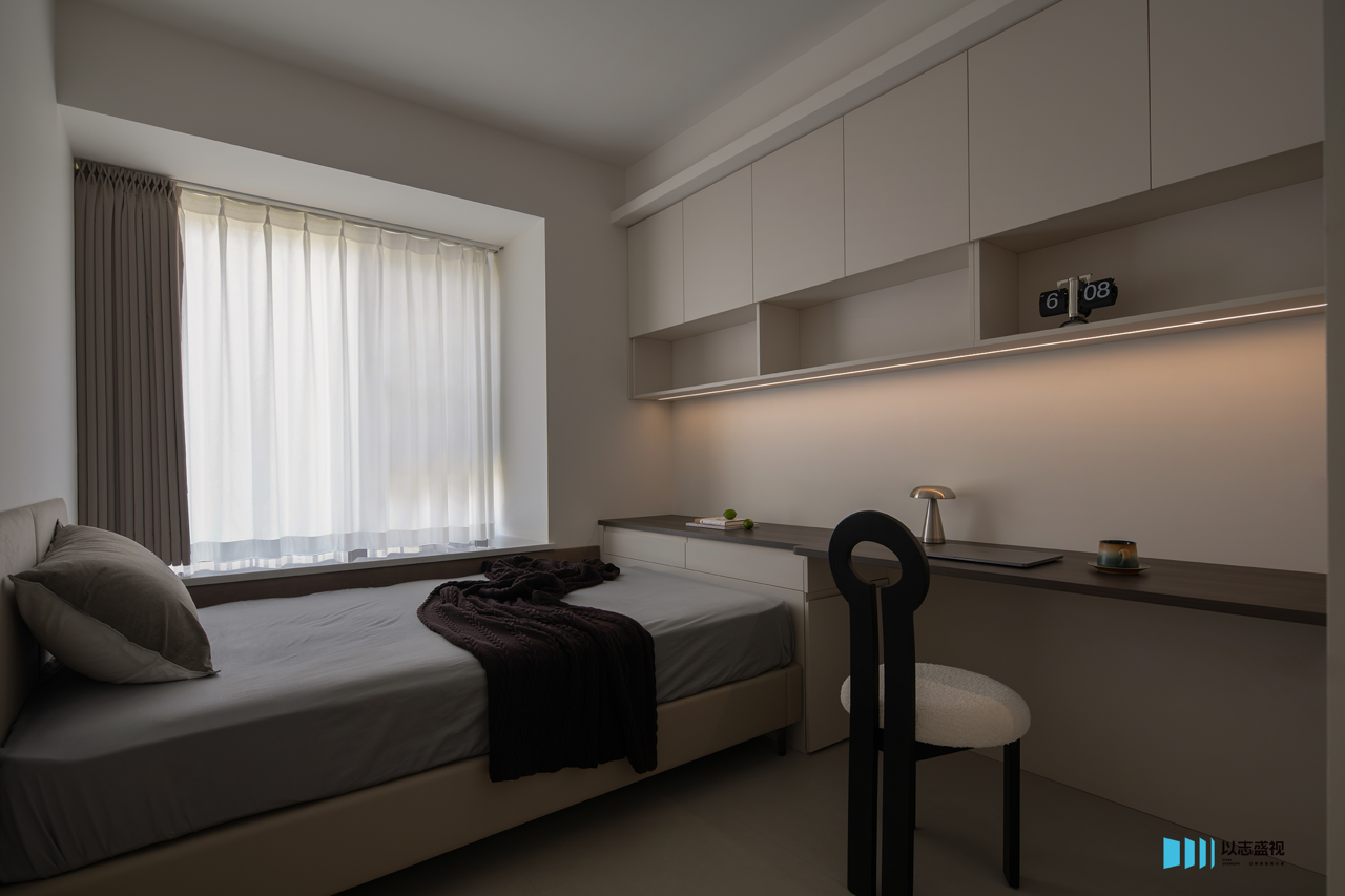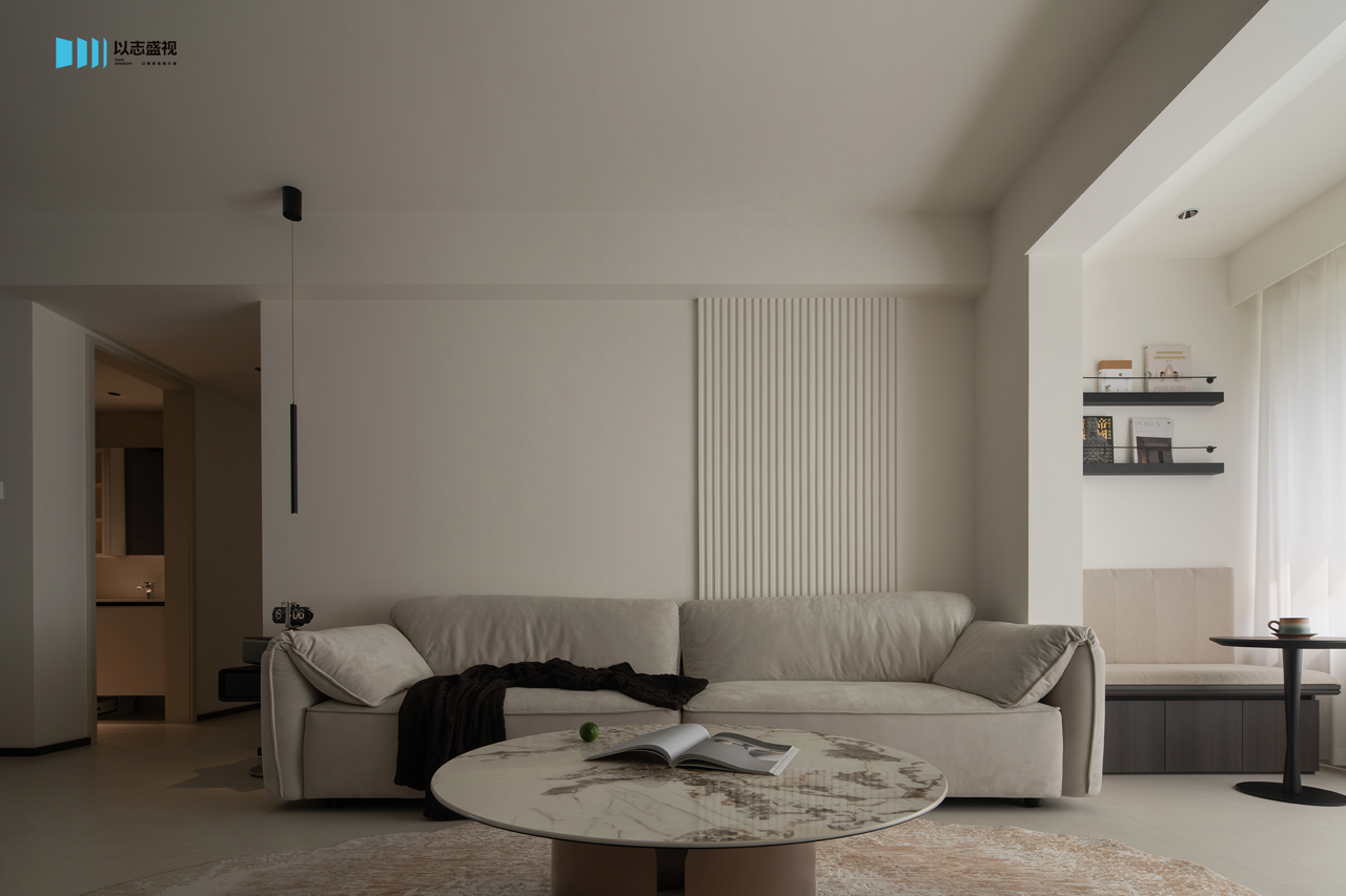 背景墙的拉槽造型以及影视墙的体快穿插,都是用流畅的线条塑造美学,不带一丝拖泥带水,勾勒出灵动的空间。