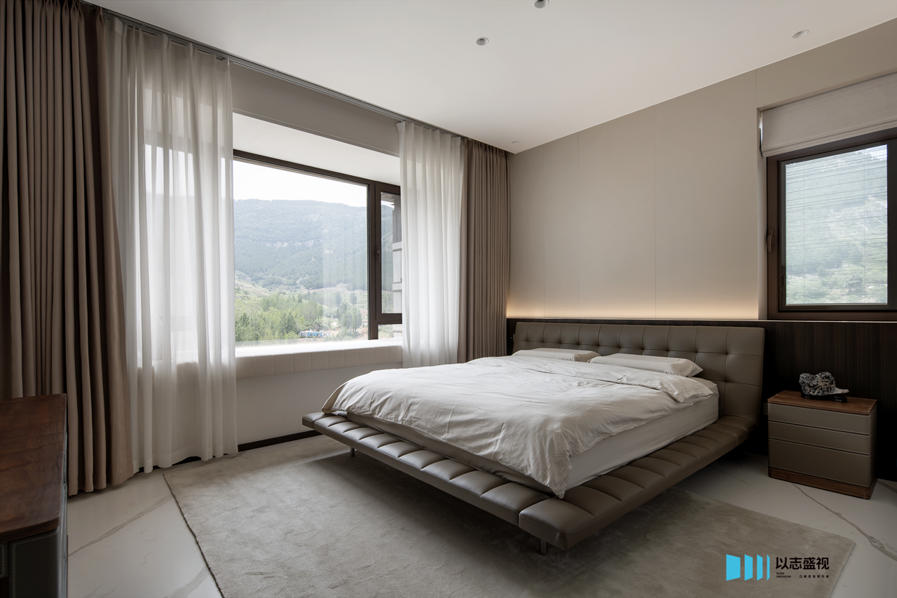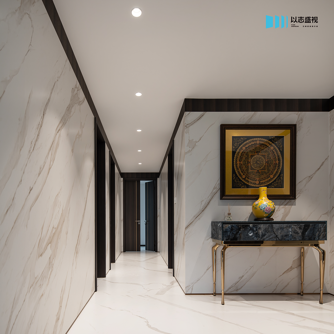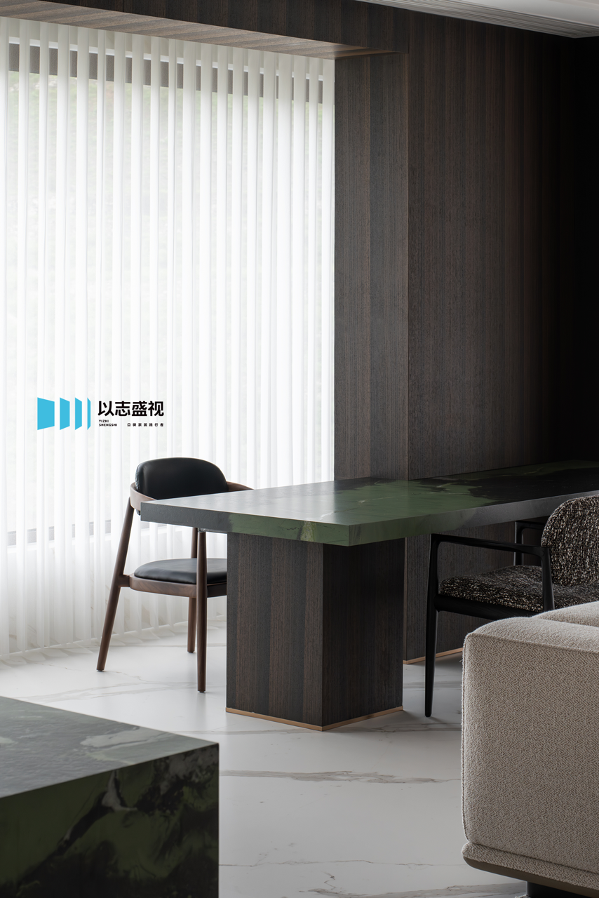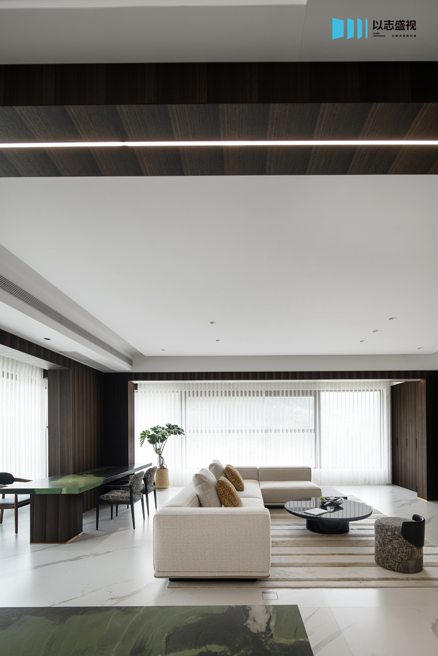北侧两个卧室打通,并入主卧室作为衣帽间。走进双开门后,是聚焦生活品质的功能套间。
