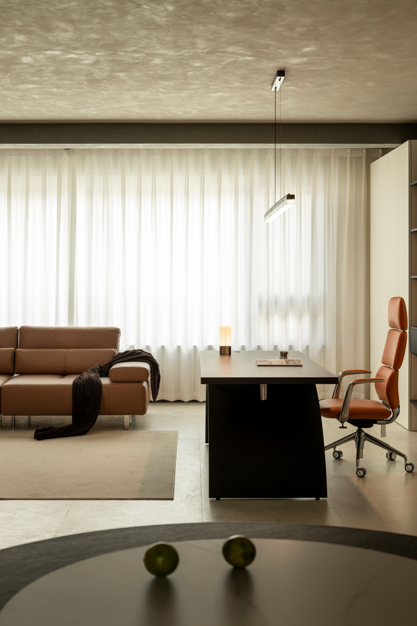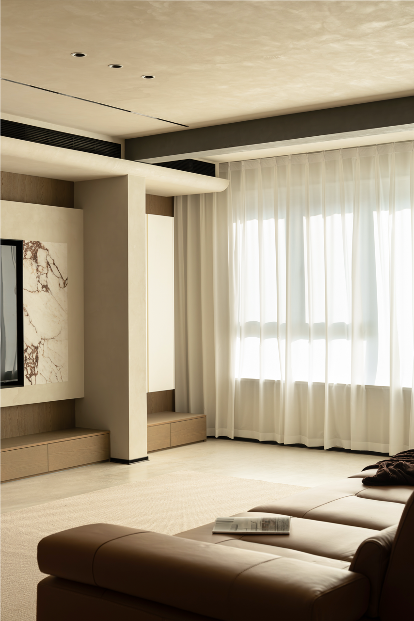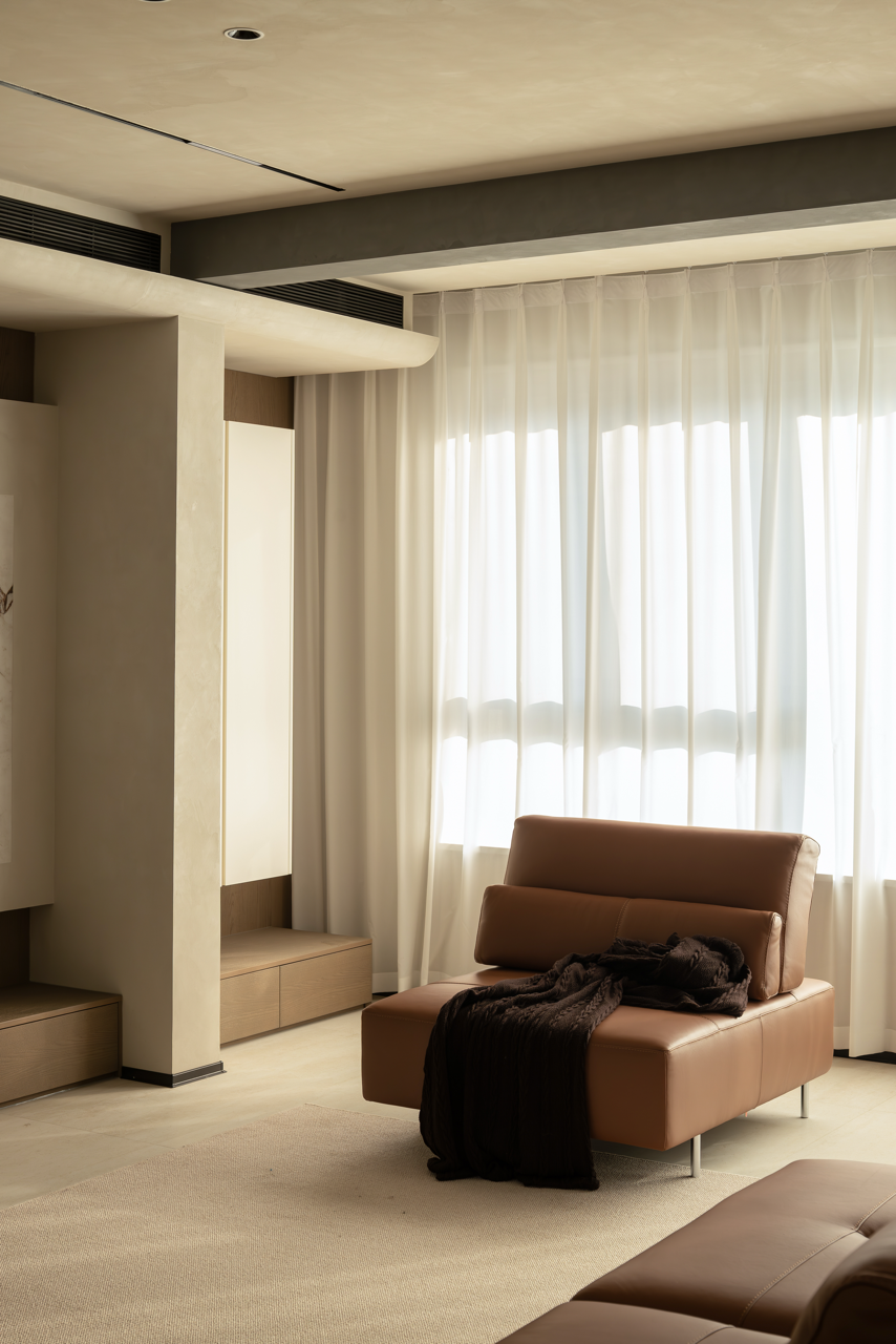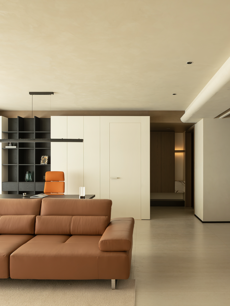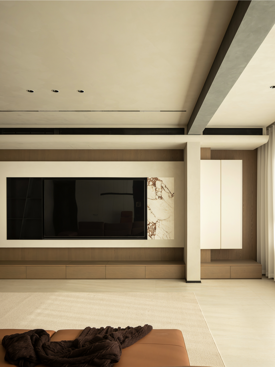 不到顶的柜子要从原始梁的处理方式来说,我们想要为空间保留一种建筑结构,不去刻意地隐藏,而是将最好的美感展示出来。