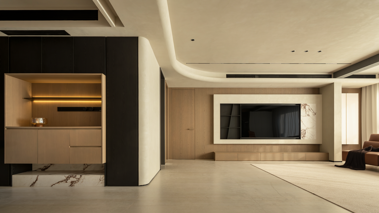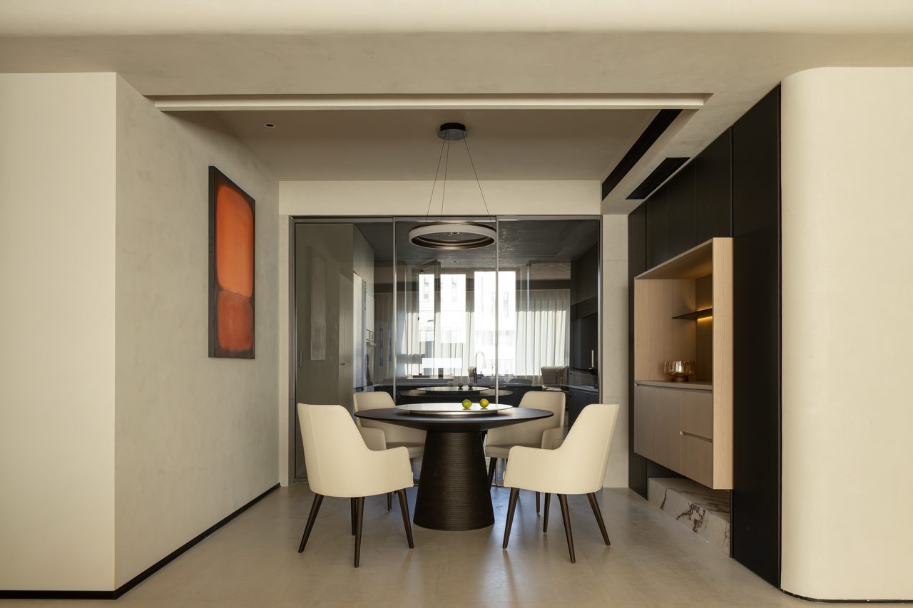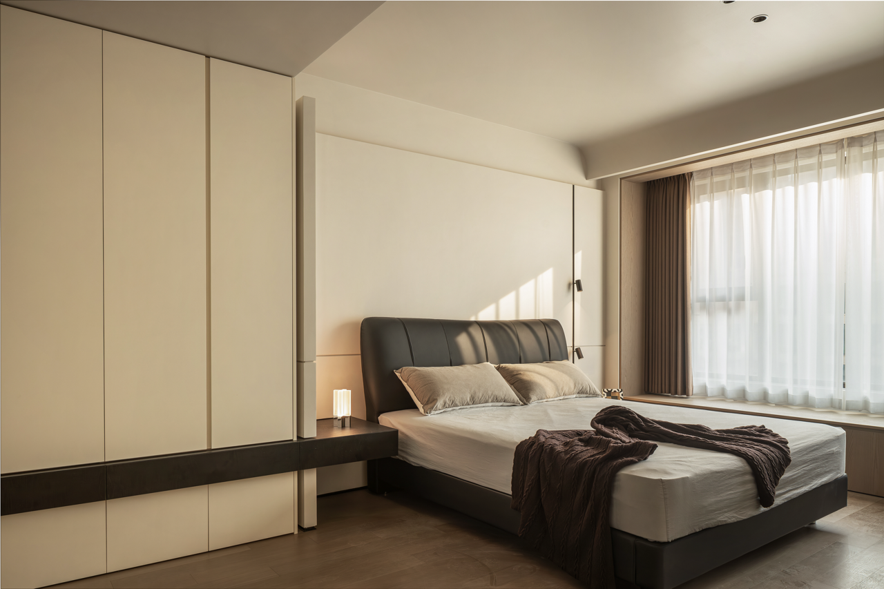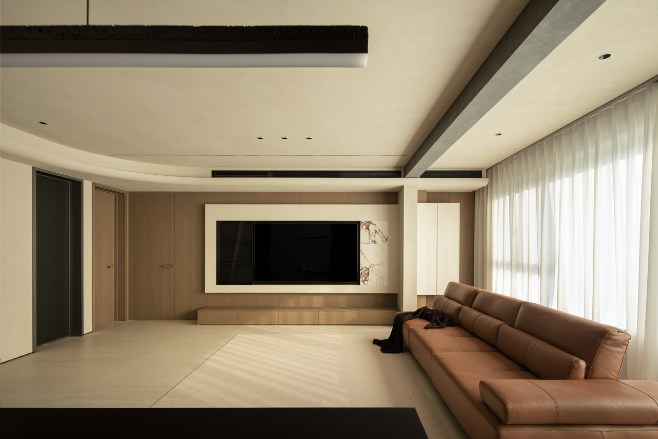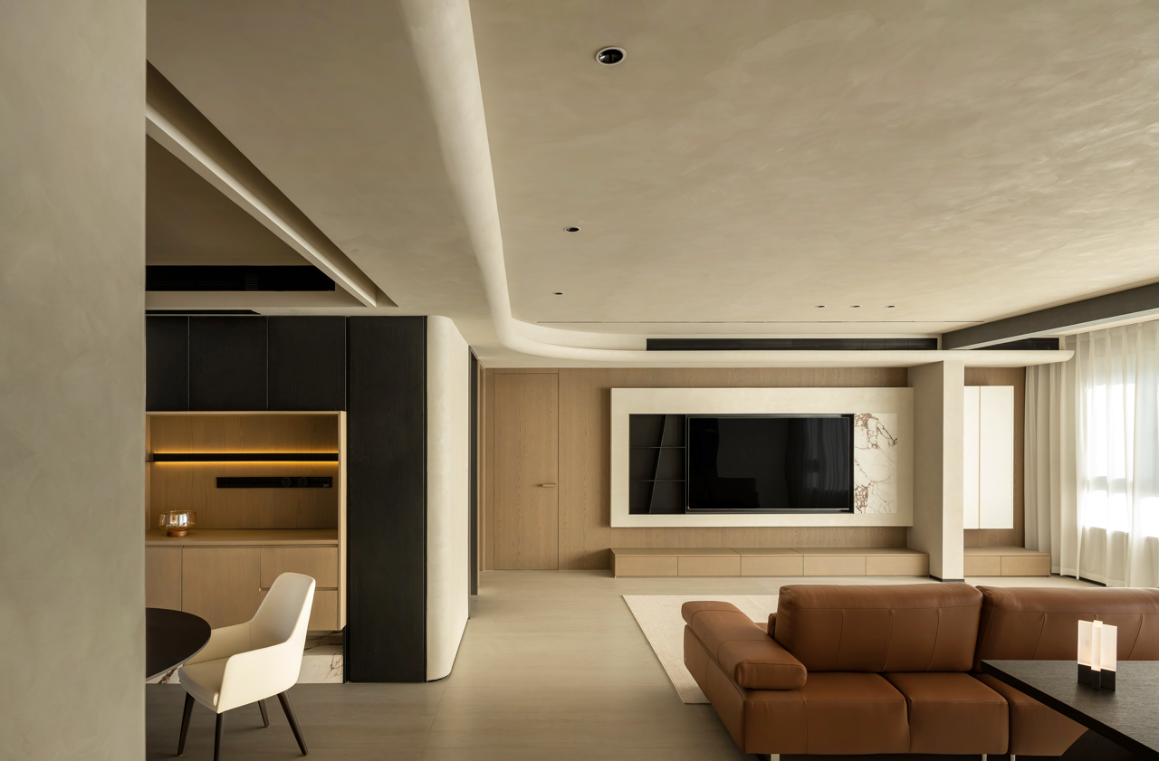 用梁去定义高度,柜体顶部脱开,与吊顶之间就有了呼吸的空间。