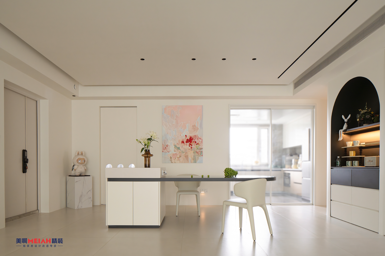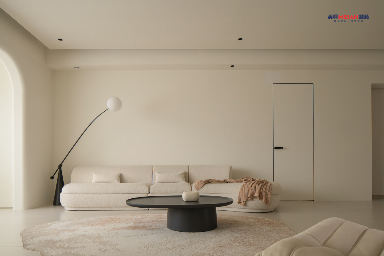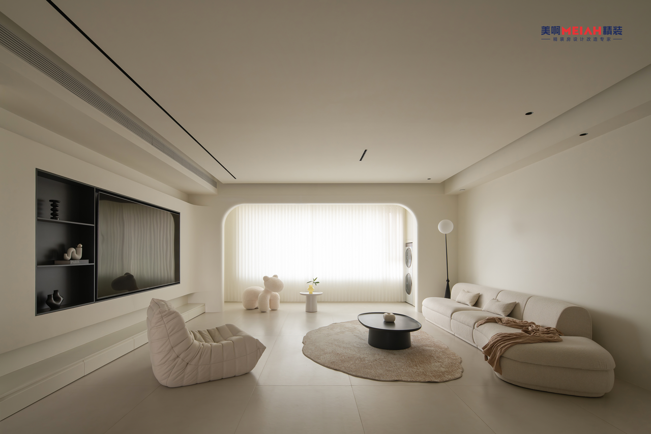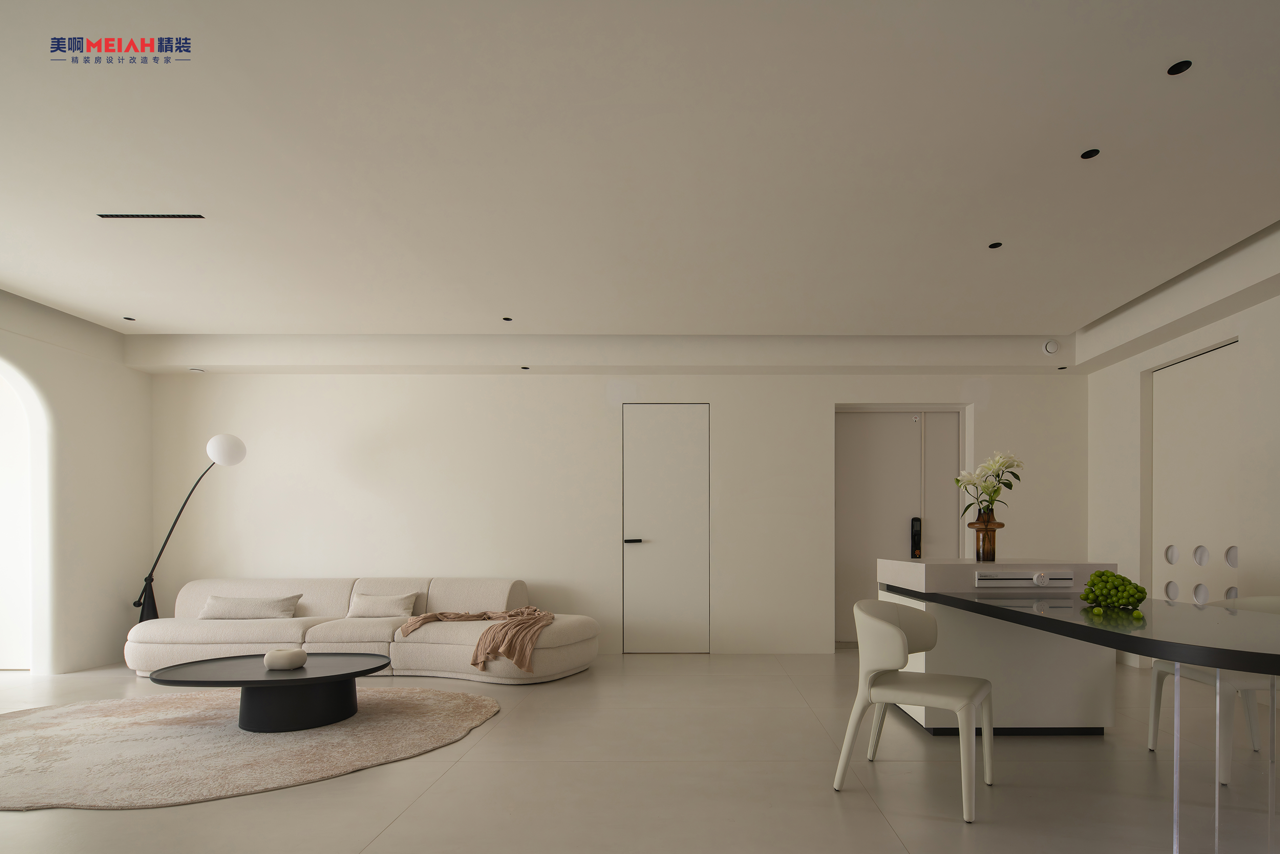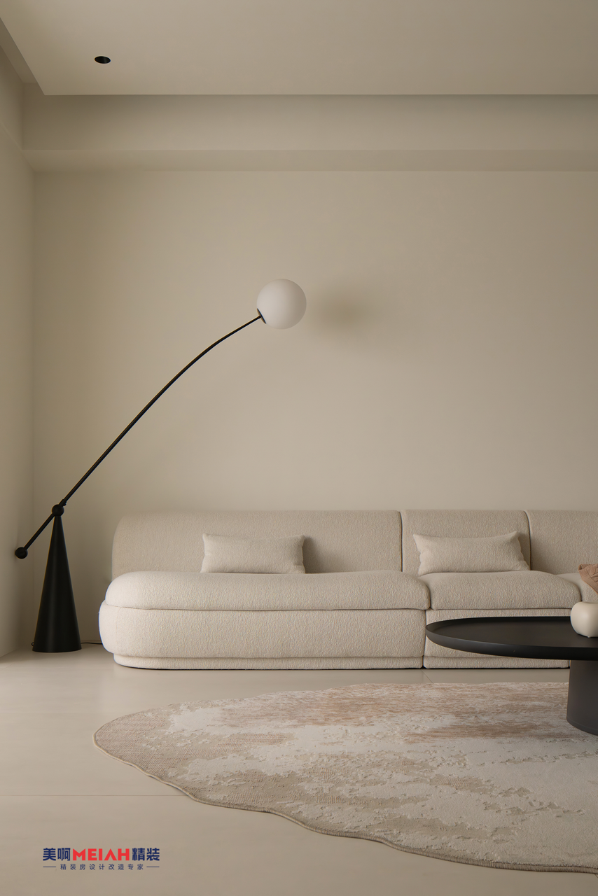 这些交付风格,怎么也和屋主想要实现的家搭不上边,所幸就拆除重改,随心而居,有了这个极简奶油风的松弛空间。
