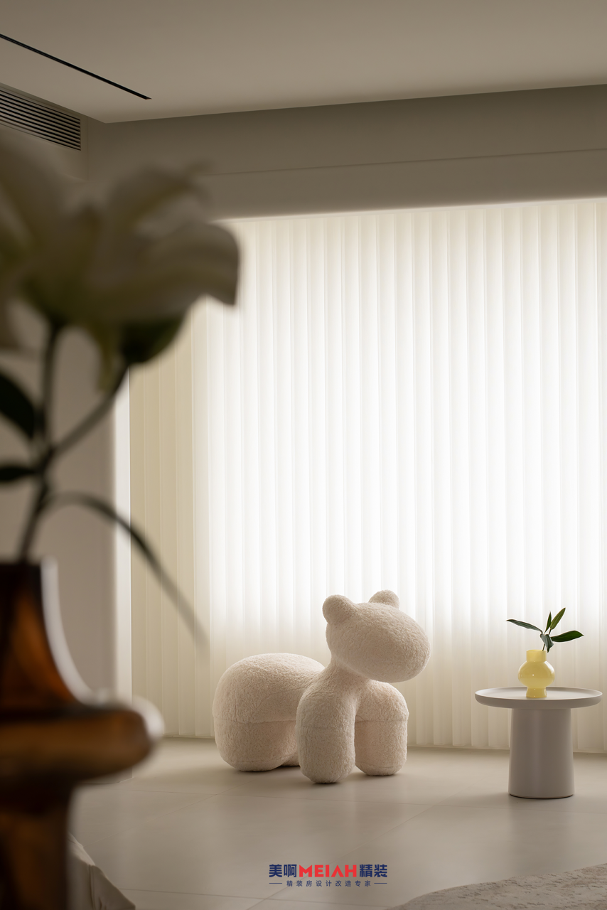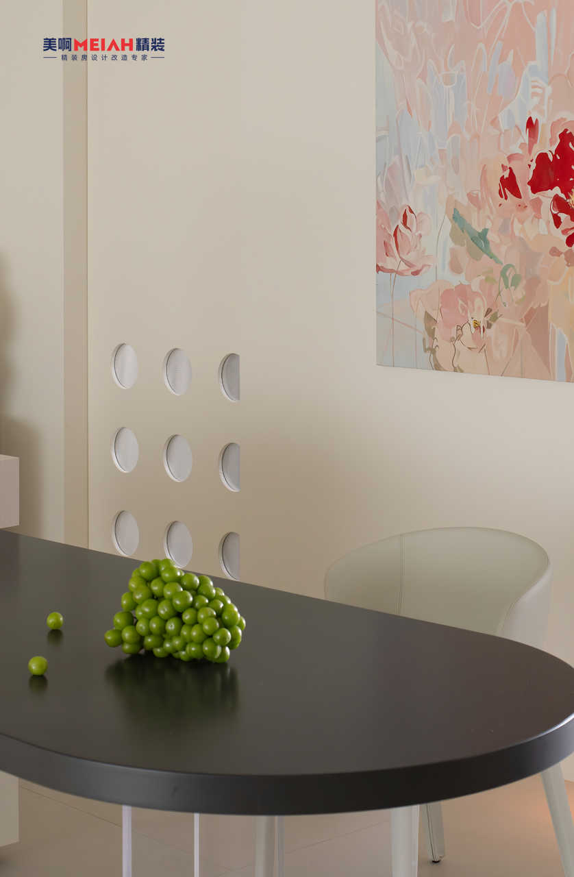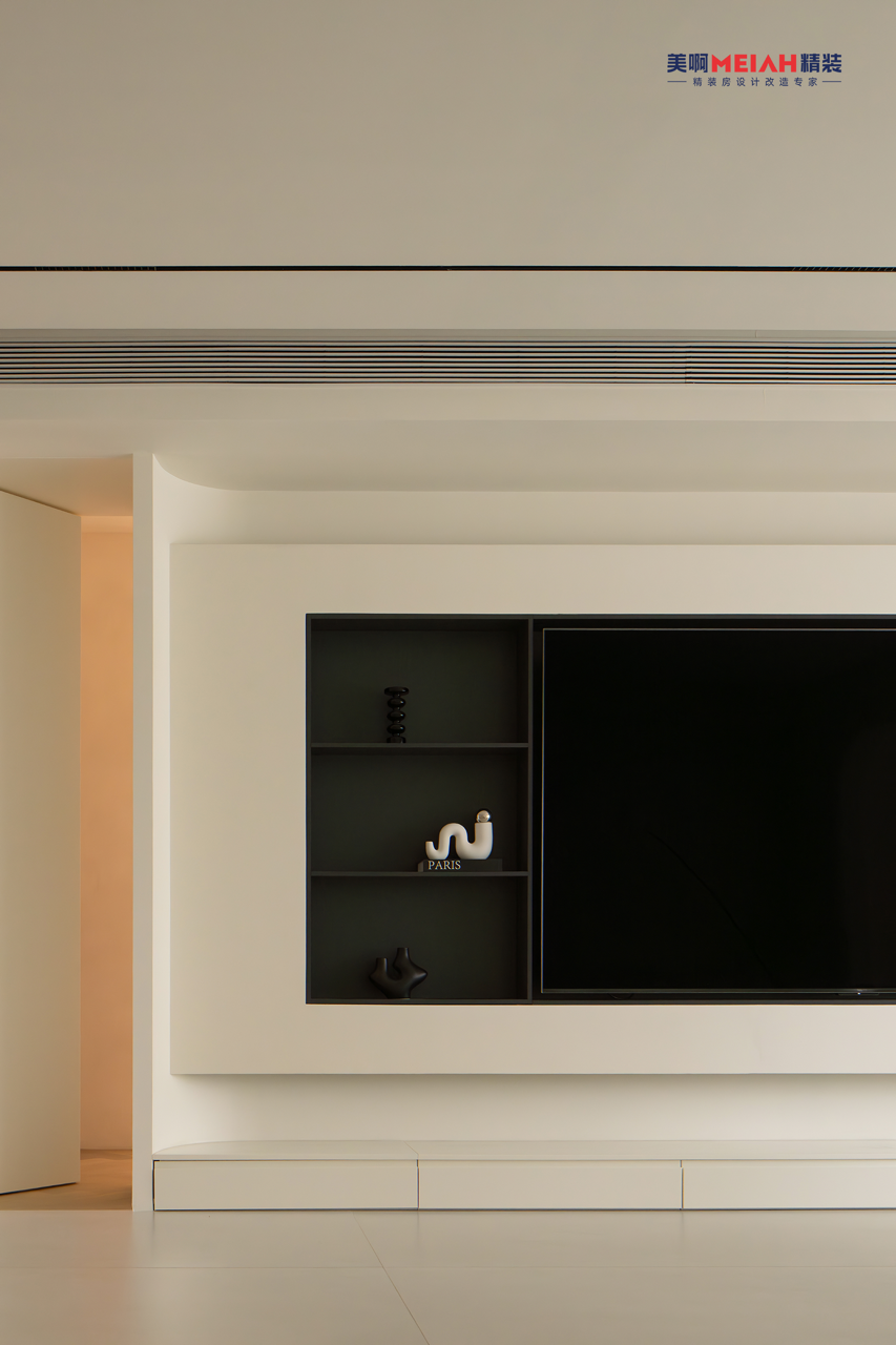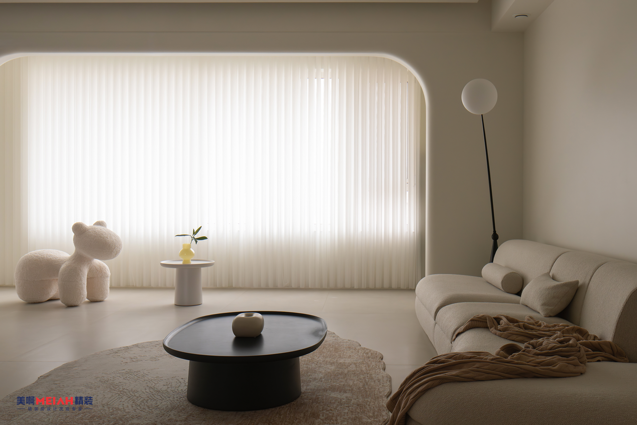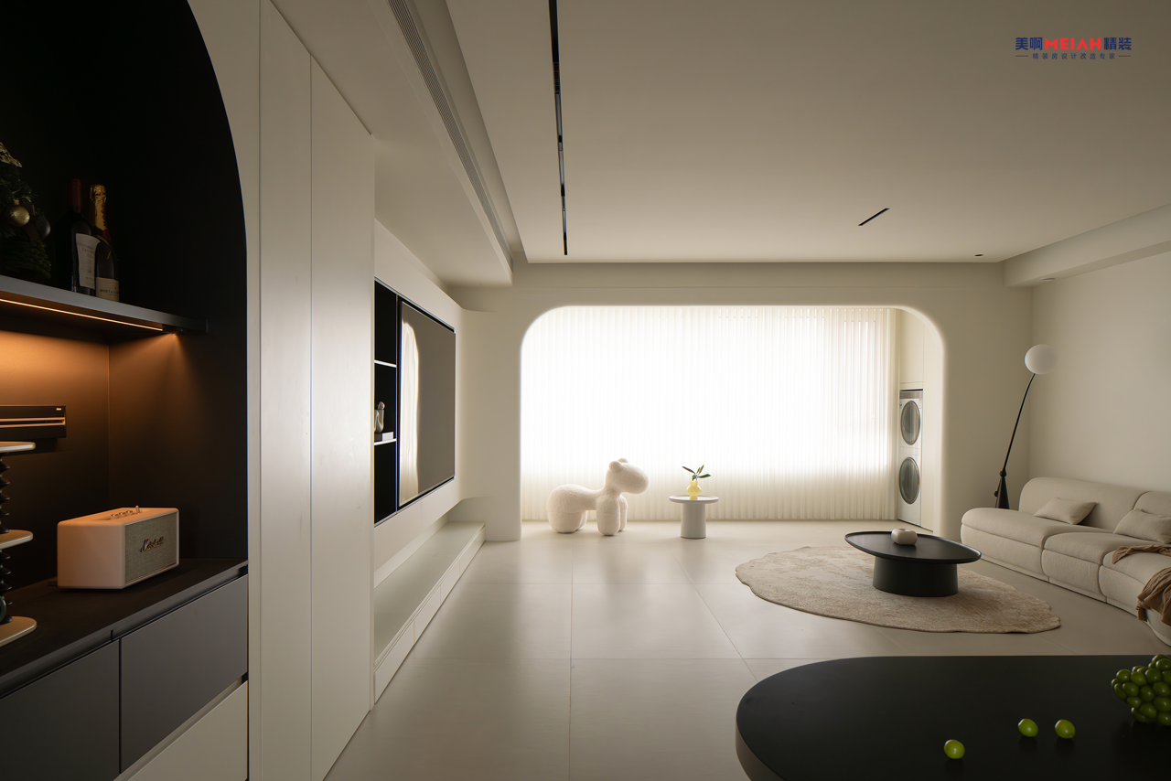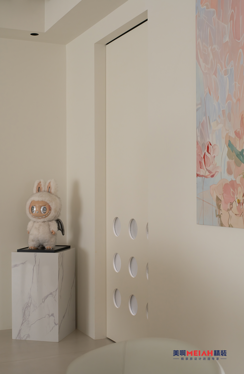 这些交付风格,怎么也和屋主想要实现的家搭不上边,所幸就拆除重改,随心而居,有了这个极简奶油风的松弛空间。