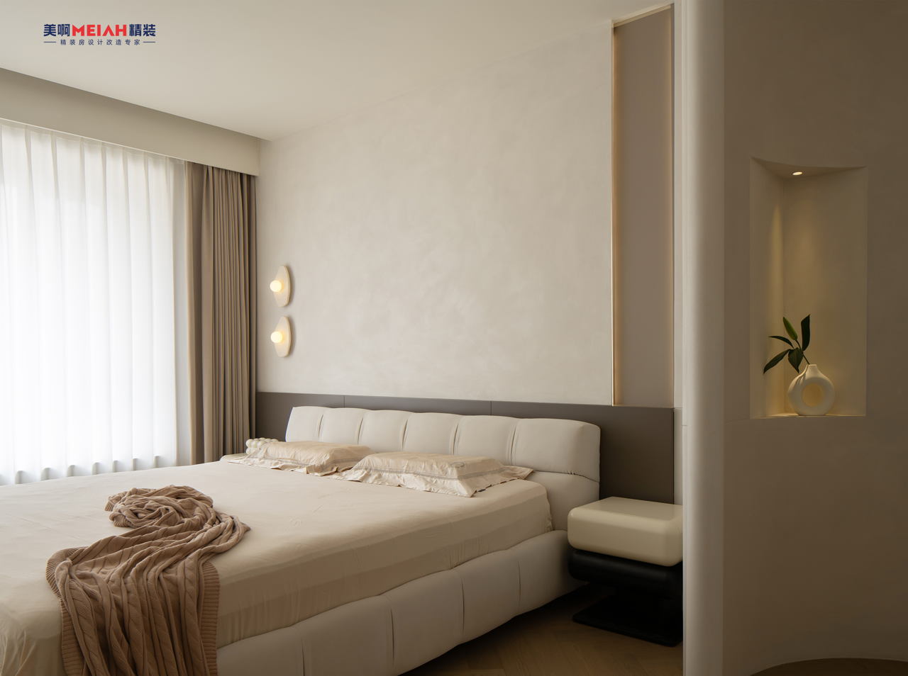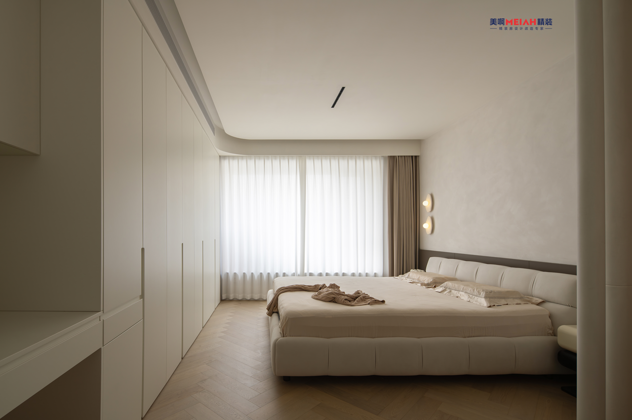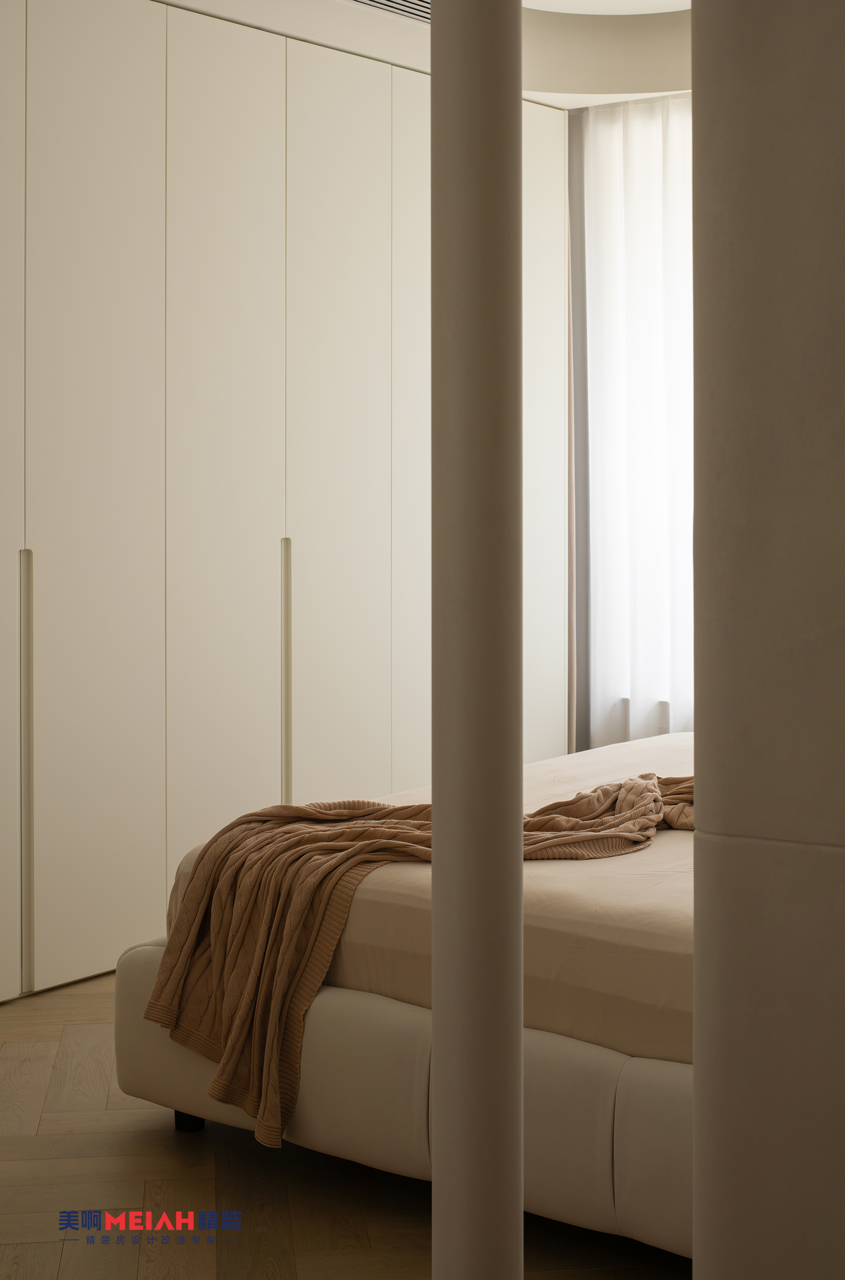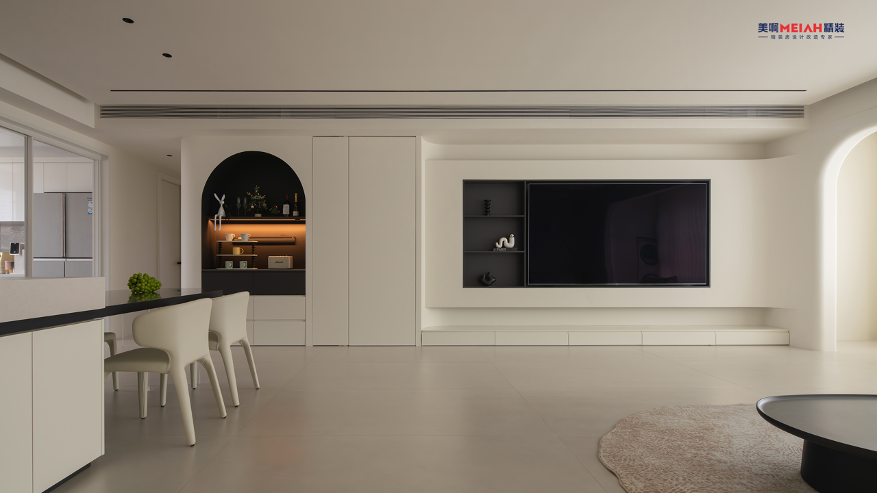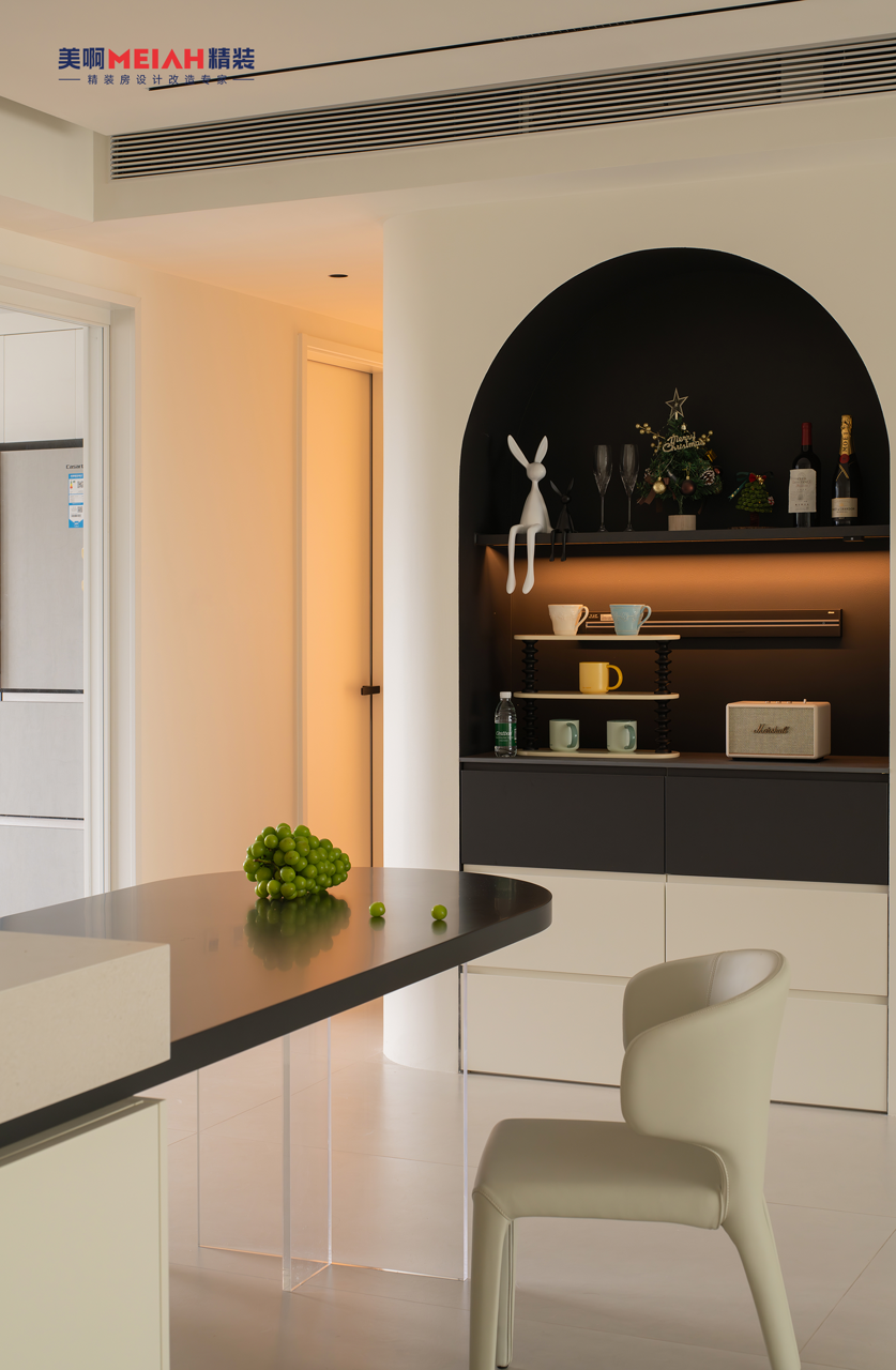 这些交付风格,怎么也和屋主想要实现的家搭不上边,所幸就拆除重改,随心而居,有了这个极简奶油风的松弛空间。