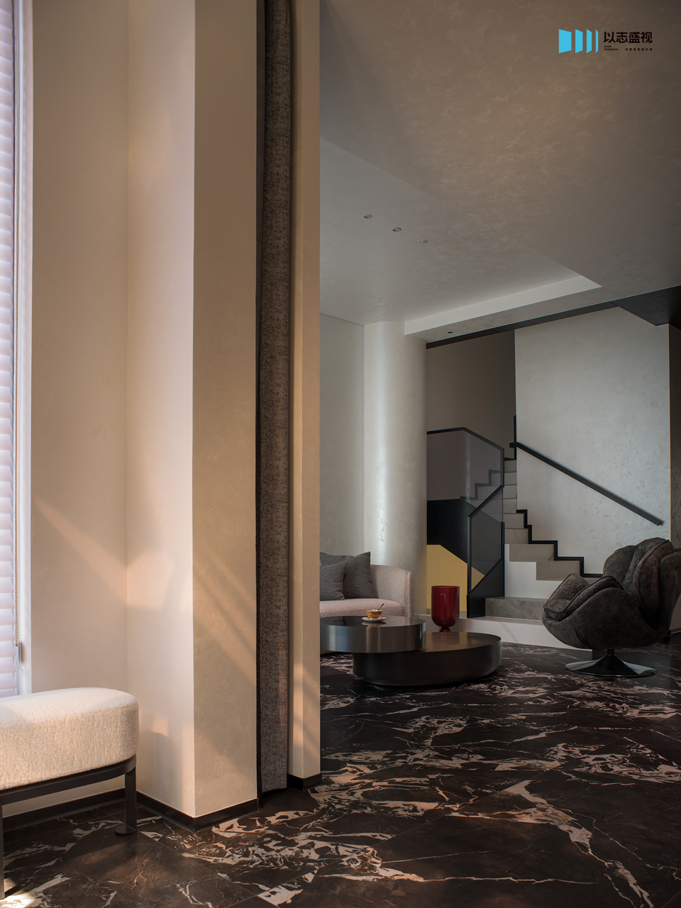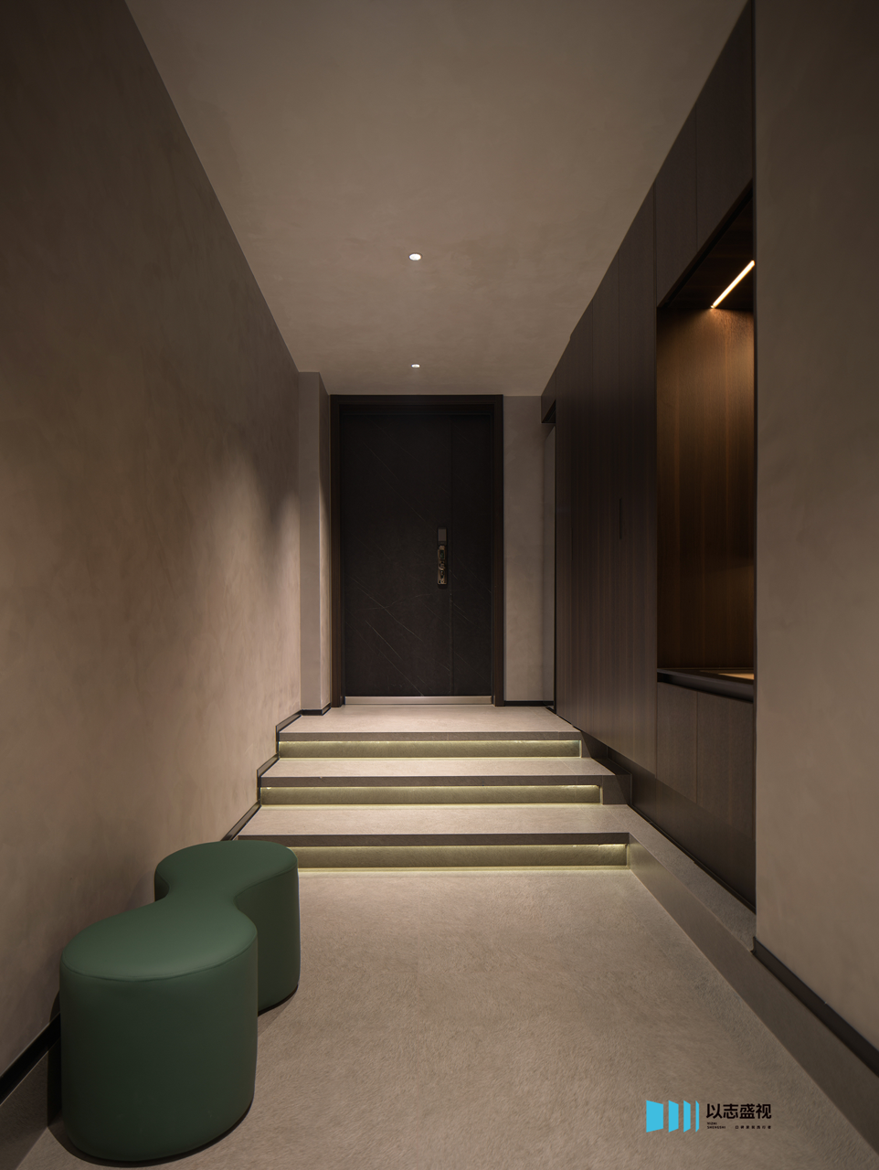 入口便开始引导情绪的转换:由外入内的过渡,通过微妙光影、质朴肌理与沉浸场景,构建出具有生活感的“阈限空间”。它过滤喧嚣,唤起内省,让行走成为屋主从纷扰世界向内在的探寻。